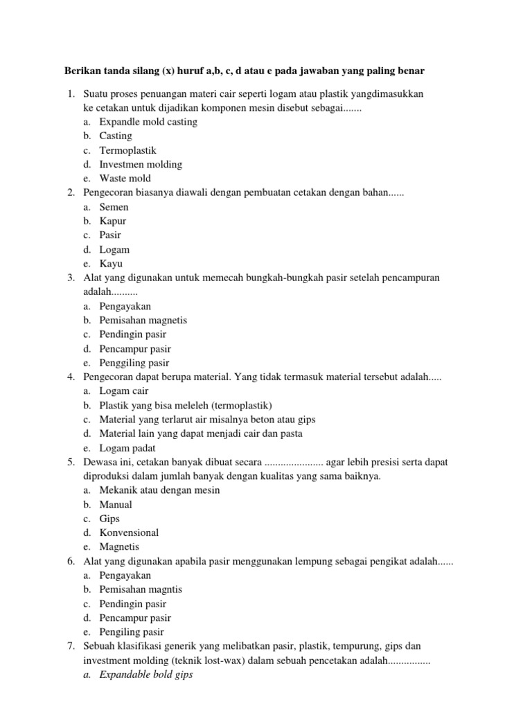 Soal Dan Jawaban Teknik Pengecoran Logam / Soal Ukk Smk 2020 Uji Kompentensi Keahlian Ujian Nasional Praktik Kejuruan Tahun Pelajaran 2019 2020 Jt Pedia / Check spelling or type a new query.